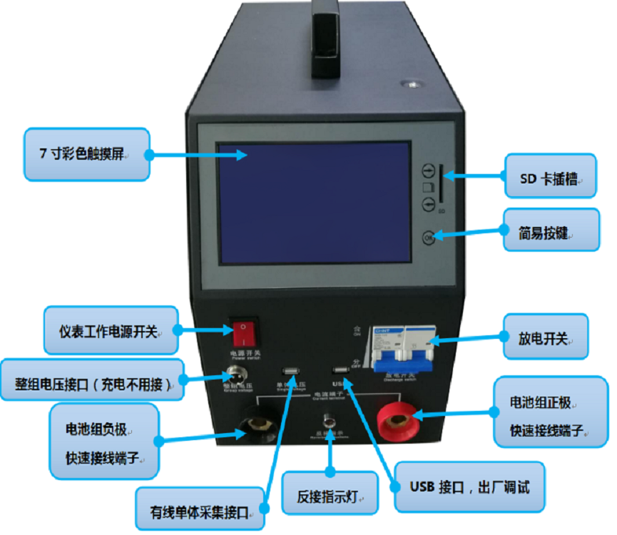 本儀器是針對(duì)整組蓄電池系列測(cè)試,不同規(guī)格型號(hào)對(duì)整組要求不同,具體根據(jù)儀表為準(zhǔn)。單體電池電壓為1.2V-12V的鉛酸蓄電池組進(jìn)行測(cè)試的儀器。儀器采用當(dāng)前測(cè)試原理,在新、新器件、新材料、新工藝的研究應(yīng)用上取得了一系列突破,是根據(jù)有關(guān)測(cè)試與維護(hù)規(guī)程要求所設(shè)計(jì),對(duì)蓄電池進(jìn)行性能檢測(cè)的測(cè)試儀器。該儀器放電功率大,體積小,重量輕,上位機(jī)數(shù)據(jù)管理軟件功能齊全,大大減少了蓄電池日常測(cè)試維護(hù)的工作量。為蓄電池組維護(hù)提供科學(xué)的檢測(cè)手段。